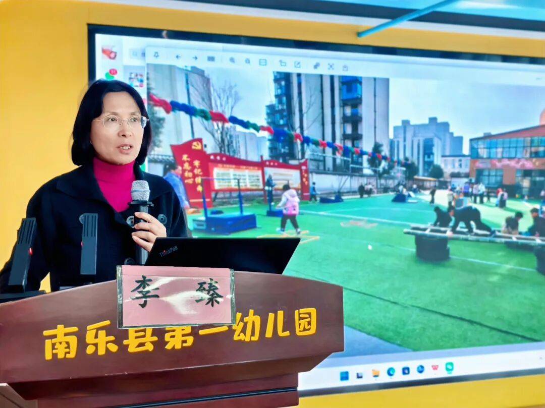活动伊始,南乐县第一幼儿园业务园长张雪静从教师专业成长、运动空间构建、运动时间保障、游戏组织实施、幼儿自主创设游戏环境等方面分享了幼儿园户外体育游戏的实践经验。