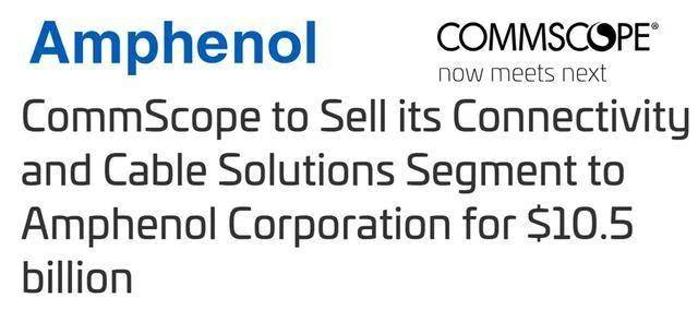 光纤电缆制造商安费诺(Amphenol)将以105亿美元收购康普(CommScope)的连接与电缆解决方案业务,以扩大其宽带产品组合和网络基础设施。这笔全现金交易旨在使安费诺的工业互连产品多样化,尤其是在建筑基础设施连接市场。这是安费诺进行的最大规模收购,将提高其市场份额,并利用宽带和5G需求激增的机遇,同时使公司处于快速发展的连接领域前沿。