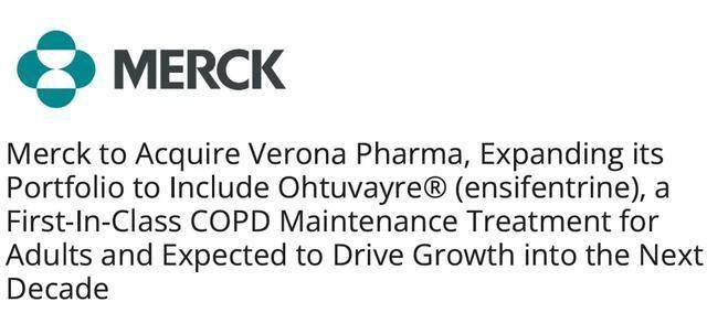 制药巨头默沙东公司(MSD)以约100亿美元的价格收购专注于呼吸系统疾病的Verona Pharma公司。通过此次收购,默沙东公司将获得Verona的慢性阻塞性肺疾病药物Ohtuvayre。美国食品药品监督管理局于2024年6月批准Ohtuvayre用于成人慢性阻塞性肺疾病的维持治疗。该交易于10月7日正式完成。
