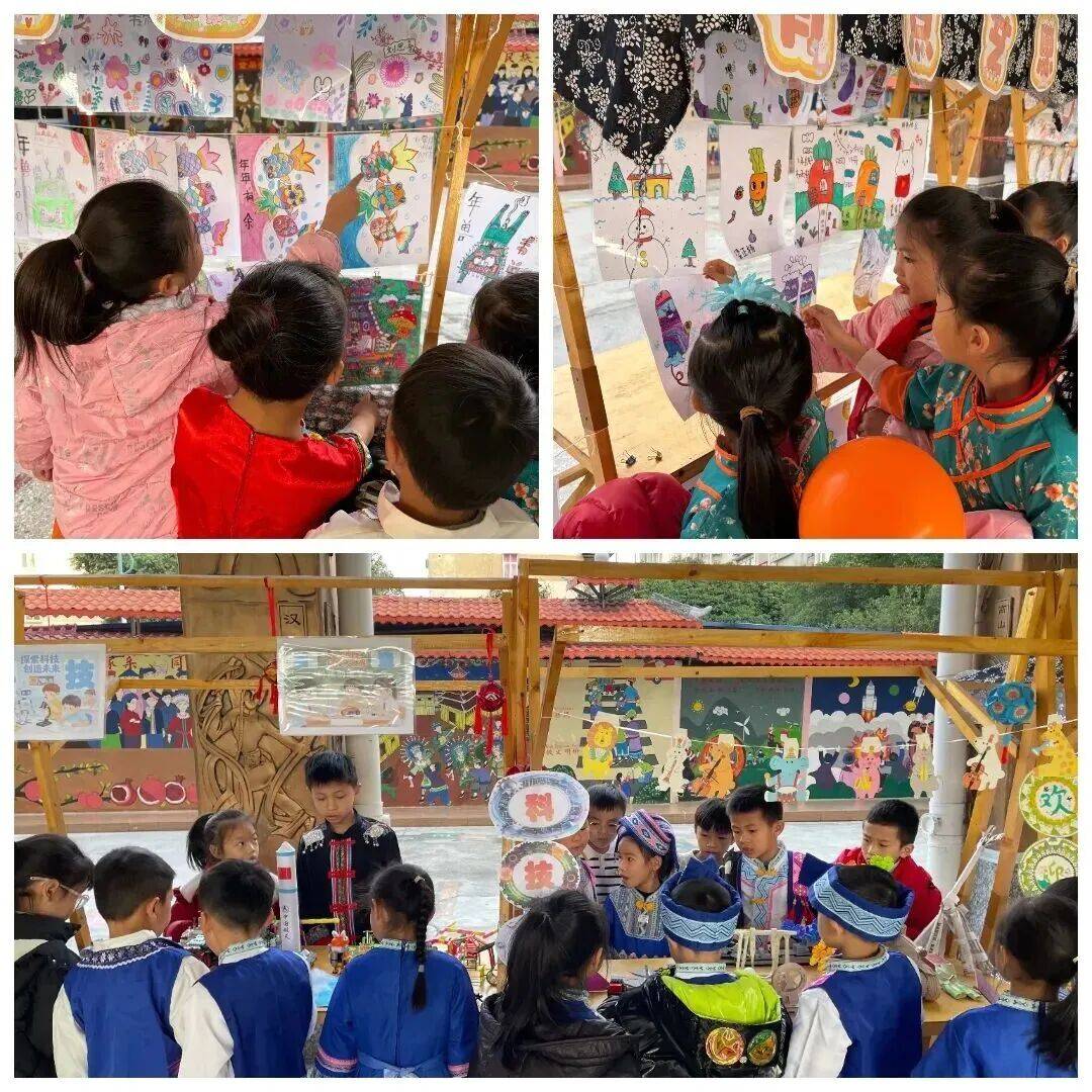 舞台上,舞龙醒狮热闹开场,跳绳表演绳影翩跹,民族舞蹈、传统器乐、红色诵读、主题合唱等节目依次上演,展现非遗之美与家国情怀。作品展区则汇集书法、绘画、非遗刺绣、剪纸、马勺手作及科技手工作品,孩子们以笔触、剪刀与巧思,传递民族风韵与红色初心,在创作中体验传统文化与创新精神的交融。