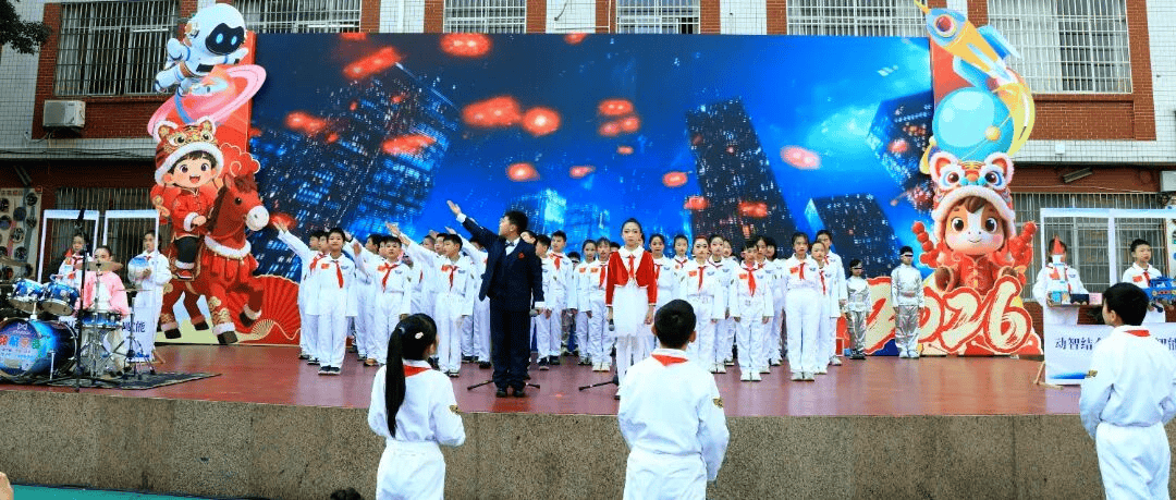 拉堡第二小学举行“科技启航迎新岁,童心筑梦向未来”元旦文艺汇演。龙狮表演《龙腾狮跃 龙马精神》以激昂鼓点拉开序幕,五、六年级舞蹈《少年有志》展现新时代少年朝气蓬勃的精神风貌。校领导寄语同学们爱科学、敢创新,争做时代好少年。